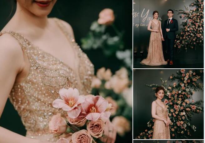 上個週末的會場,是特別的墨綠色背板加上復古色鮮花,少見的背板顏色卻和現在最流行的復古色十分相襯,拍出來的照片成品美到我們想先跟大家分享啦!