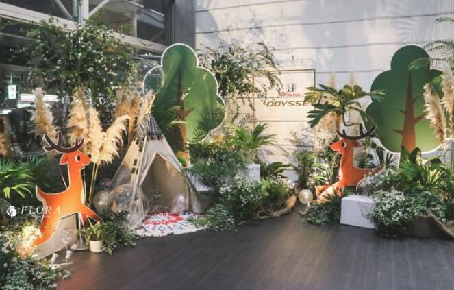 展場佈置-用大量植物作為主角,在展示間建構出一片森林,輕飄飄的氣球,穿梭其中的小鹿,為忙碌生活中帶來一絲療癒。