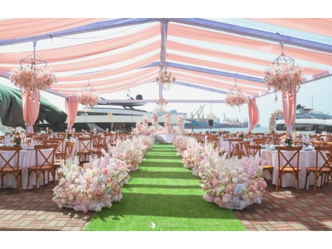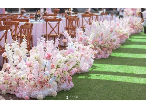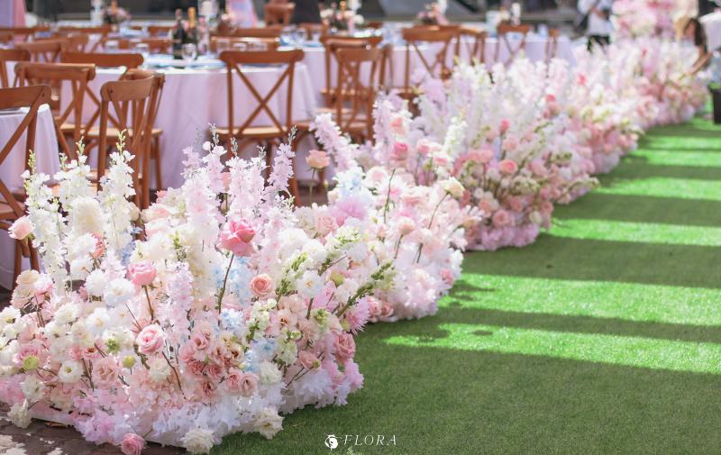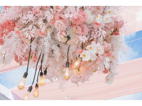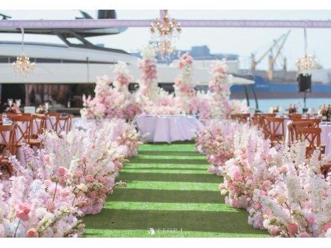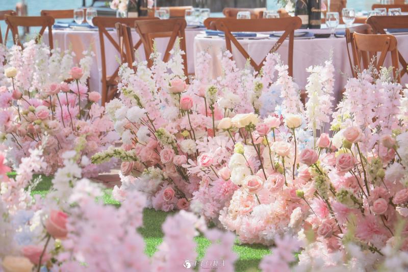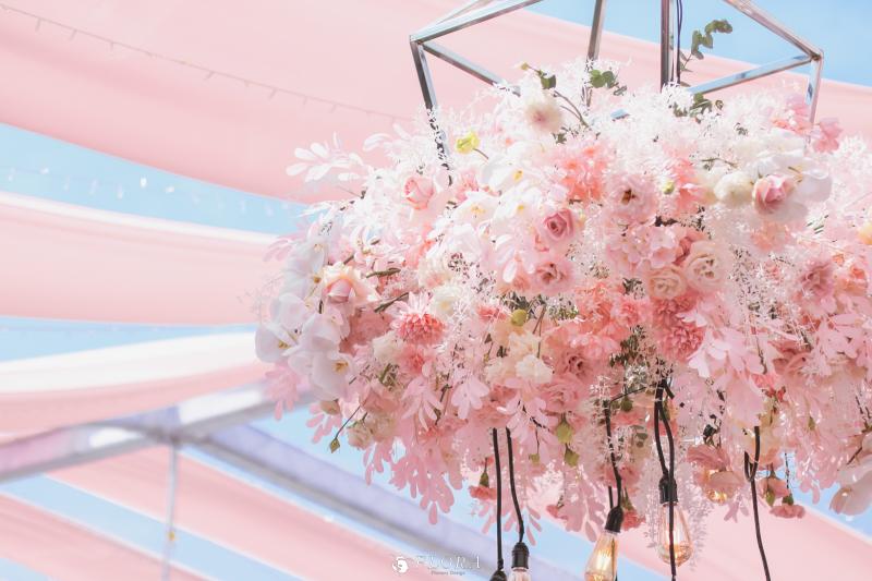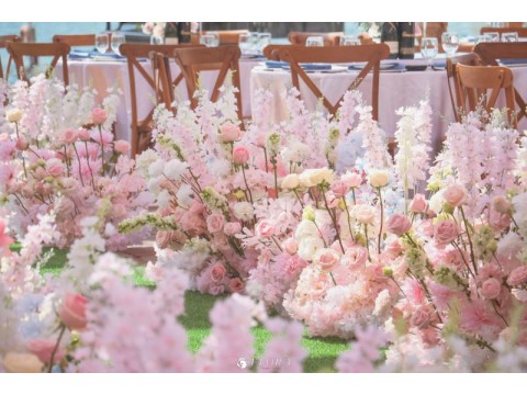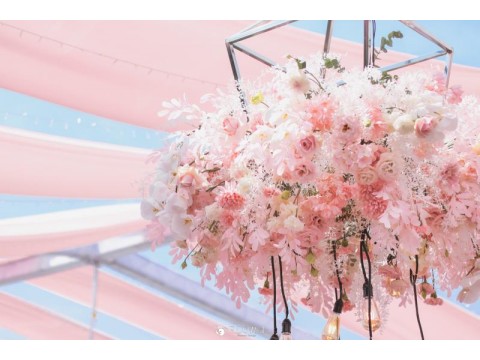 藍天之下,碧海之側,夢幻的粉色泡泡隨風搖曳,落在草坪上,開出了花。