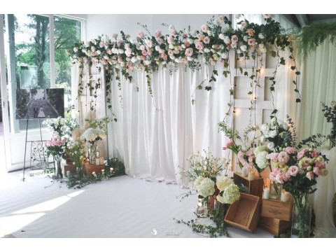把美式莊園搬進室內,溫柔的布幔搭上仿舊木門,是不同於背板的另一種風格。