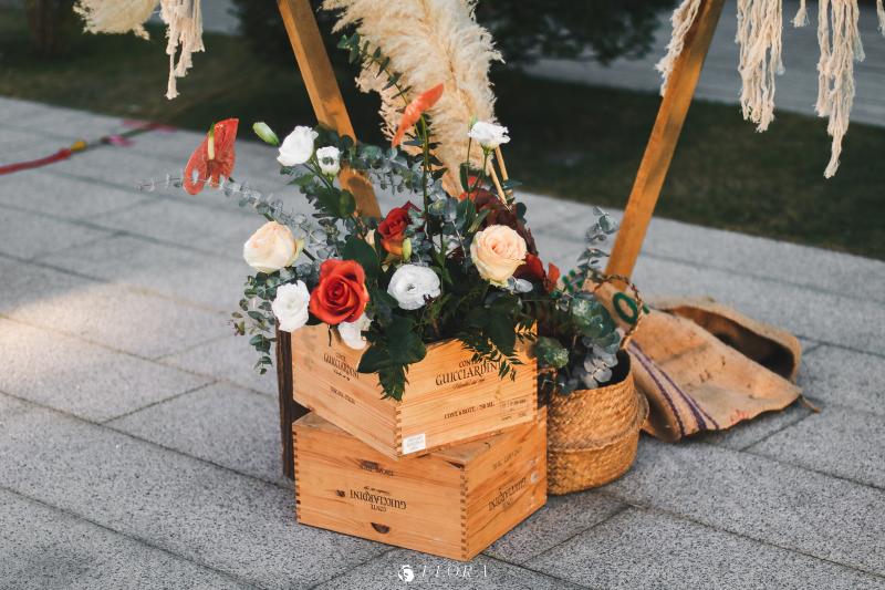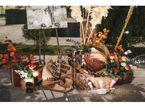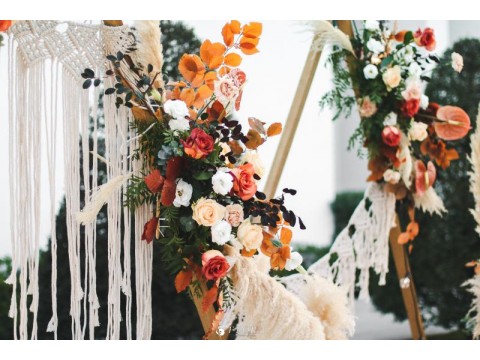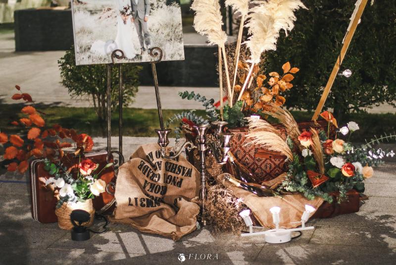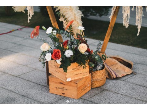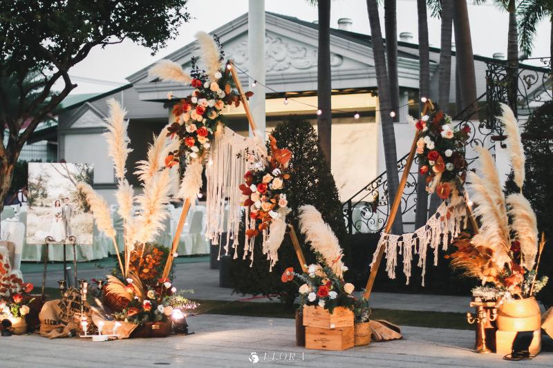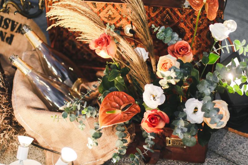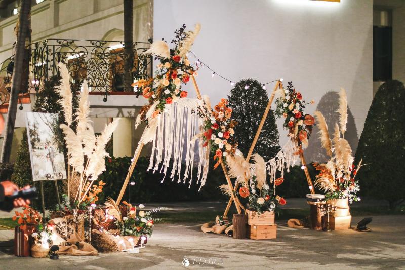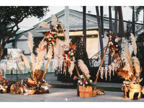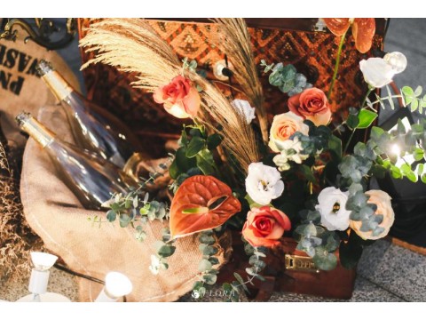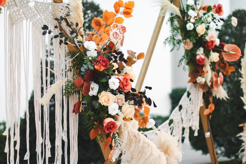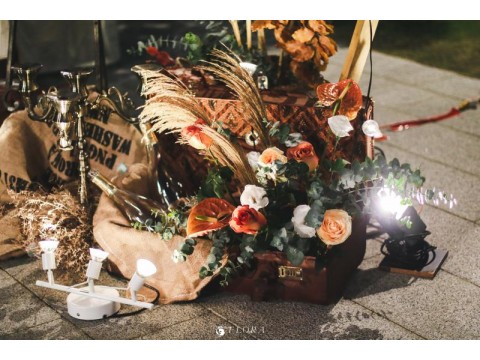 充滿個性的復古橘,加上些許白色突顯層次,隨風搖曳的編織繩和蘆葦,配上各式古董道具,浪漫又獨特。