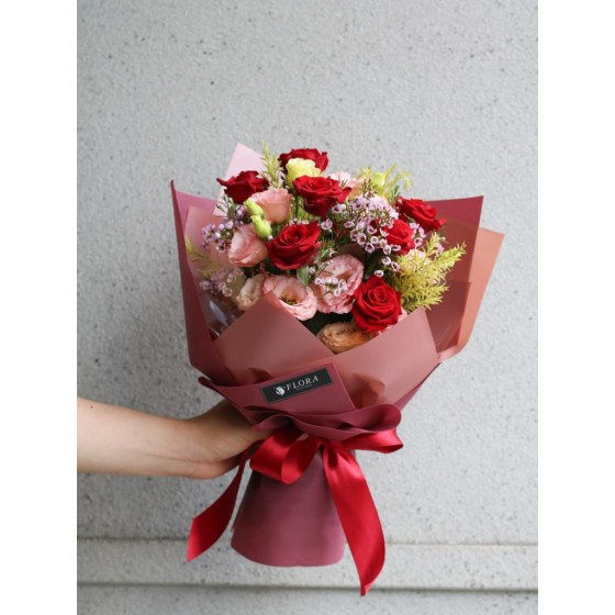 花  材:玫瑰、桔梗、當季葉材及配花