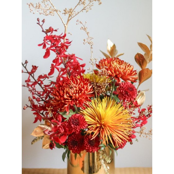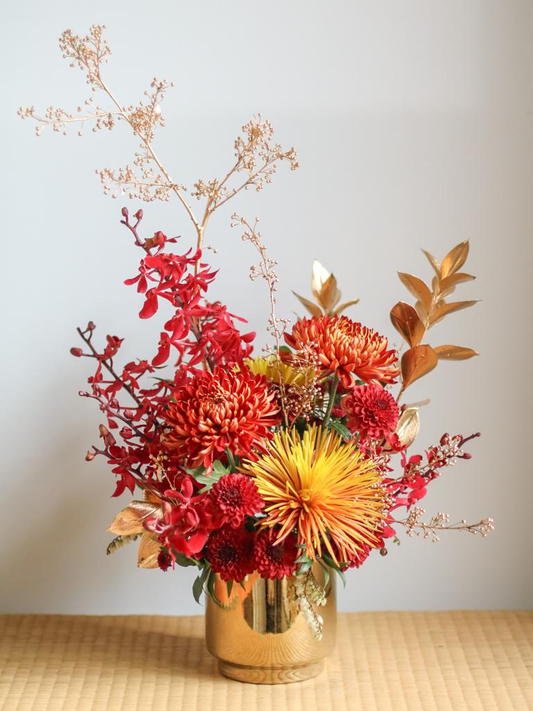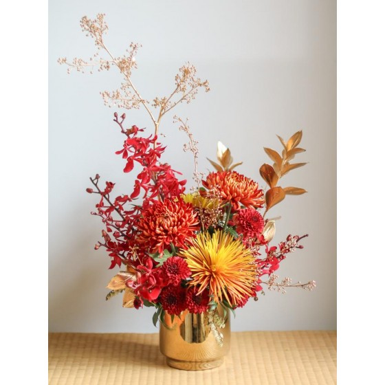 花材為天然植物,會因氣候的變化而產生不同的色澤,顏色也會有些許差異性,如遇花材或花器缺貨,請同意花藝設計師更換類似花材及花器。