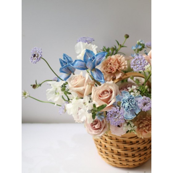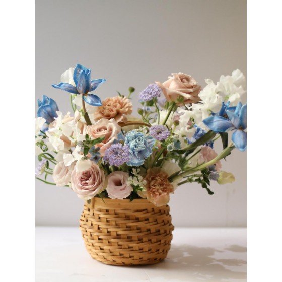 花材為天然植物,會因氣候的變化而產生不同的色澤,顏色也會有些許差異性,如遇花材或花器缺貨,請同意花藝設計師更換類似花材及花器。