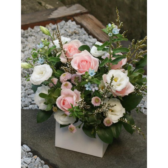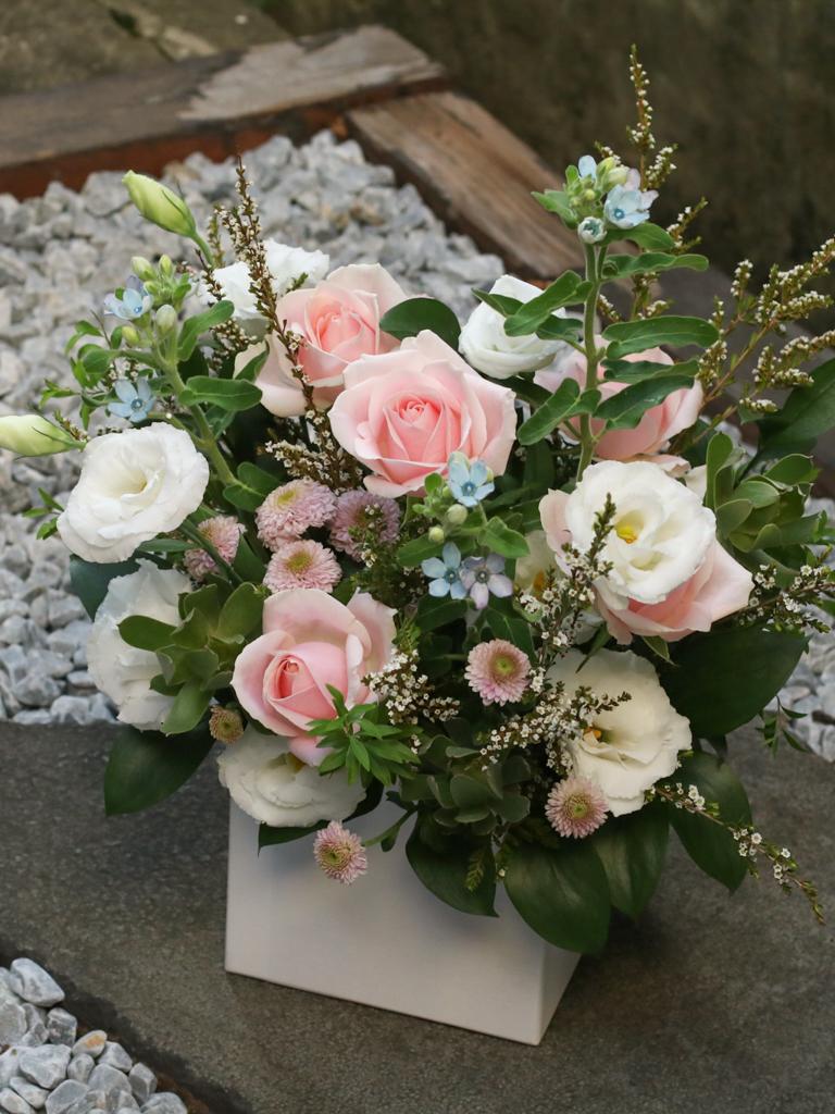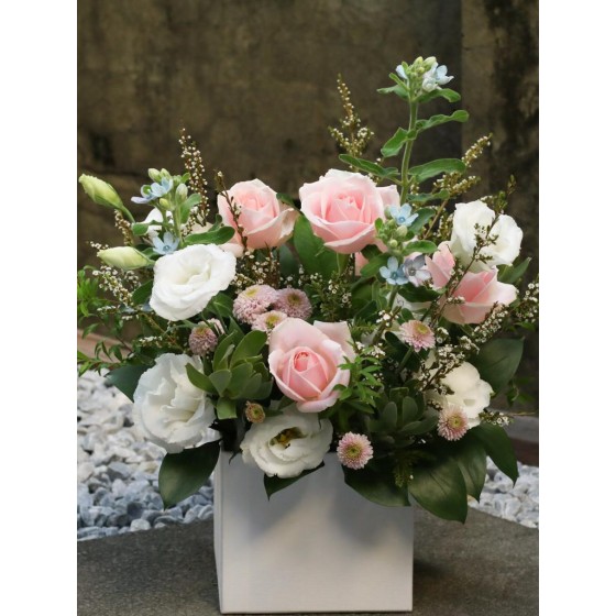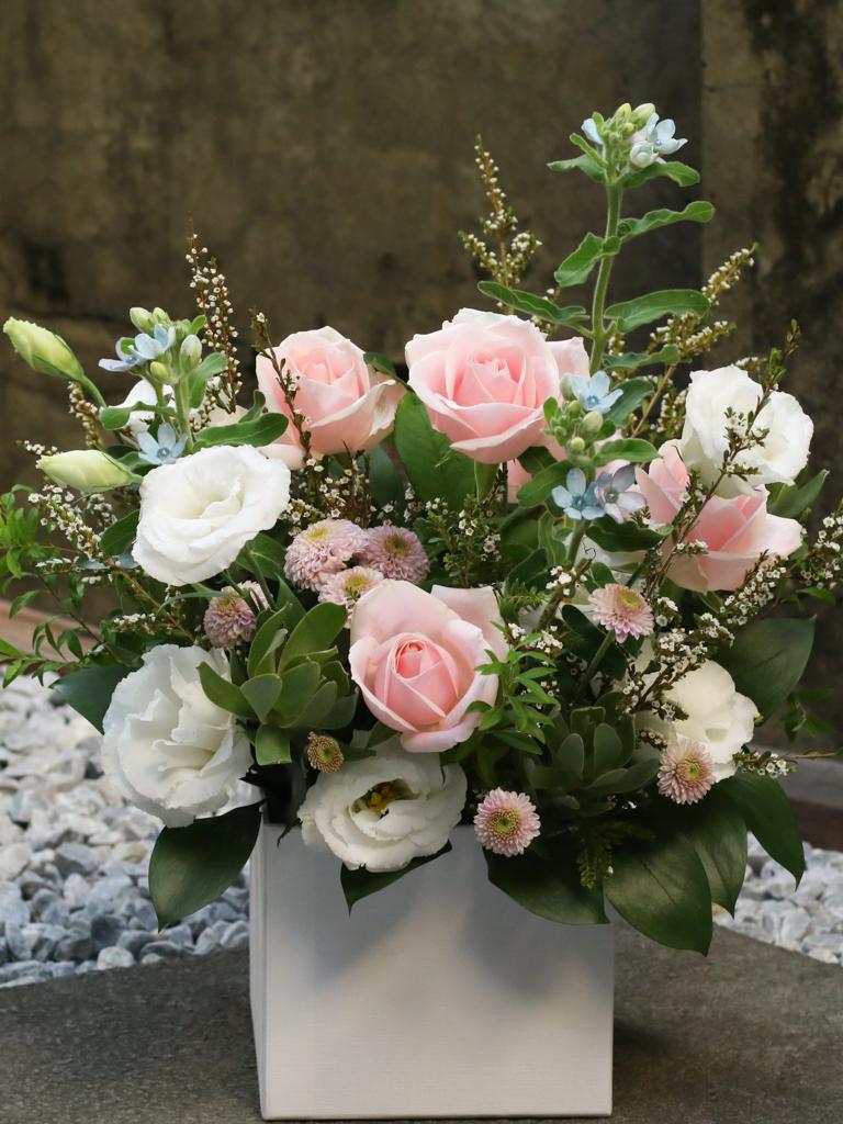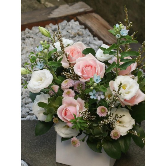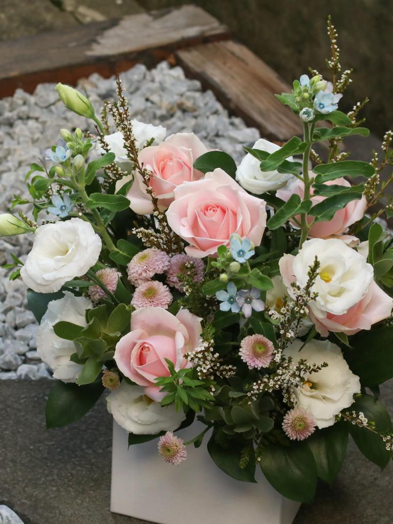 花 材:玫瑰、藍星花、桔梗、當季葉材及配花