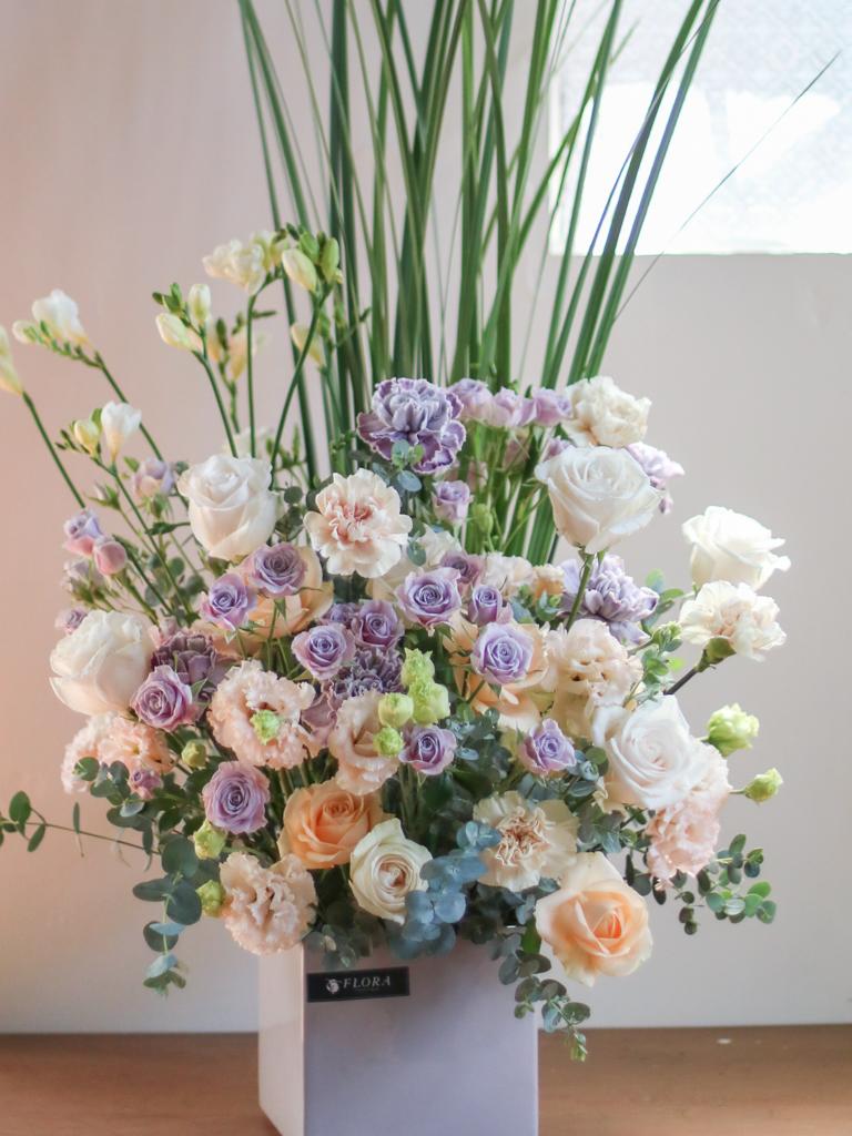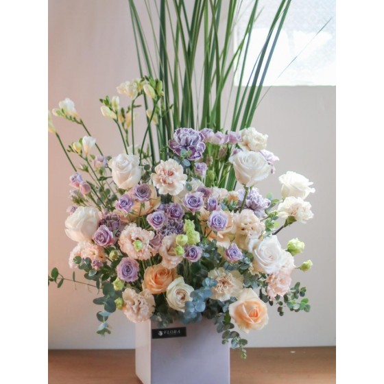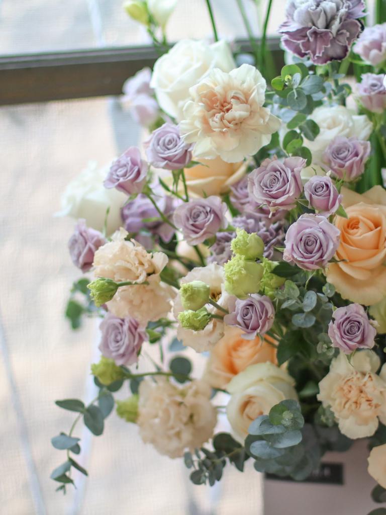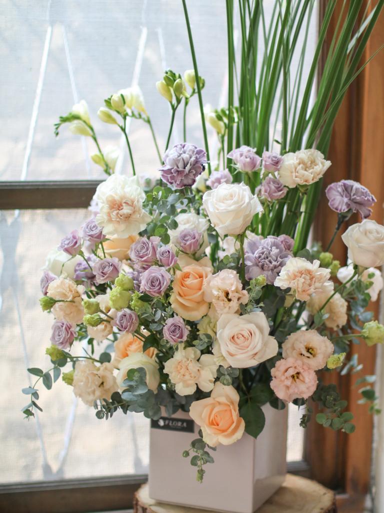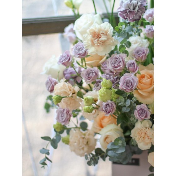 花材為天然植物,會因氣候的變化而產生不同的色澤,顏色也會有些許差異性,如遇花材或花器缺貨,請同意花藝設計師更換類似花材及花器。