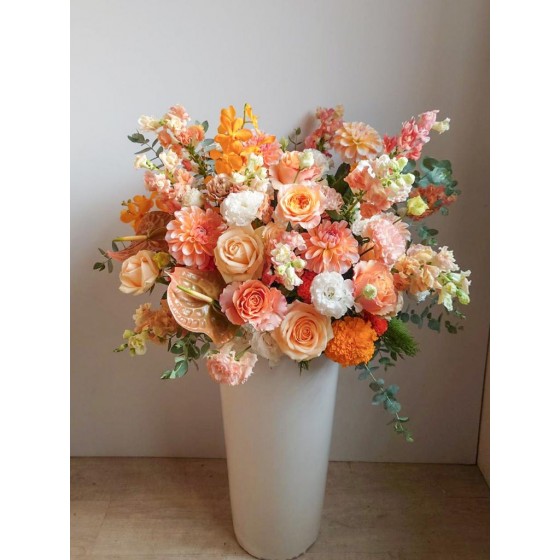 花材為天然植物,會因氣候的變化而產生不同的色澤,顏色也會有些許差異性,如遇花材或花器缺貨,請同意花藝設計師更換類似花材及花器。