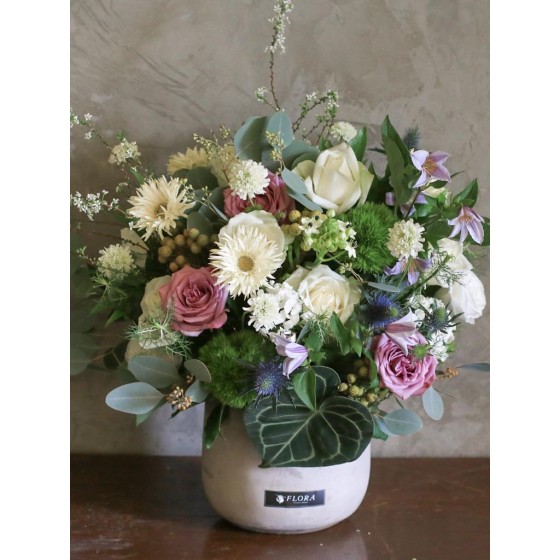 花材為天然植物,會因氣候的變化而產生不同的色澤,顏色也會有些許差異性,如遇花材或花器缺貨,請同意花藝設計師更換類似花材及花器。