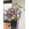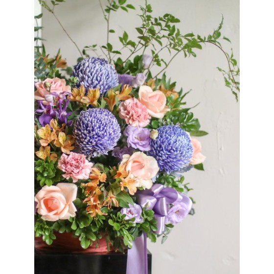 花 材:牡丹菊、玫瑰、千代蘭、水仙百合、康乃馨、當季葉材及配花