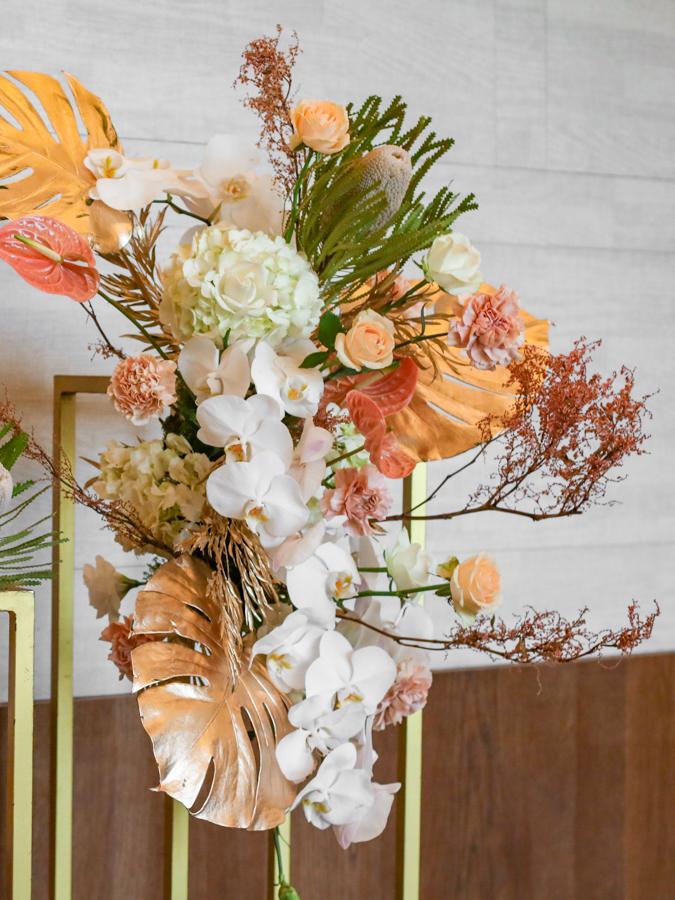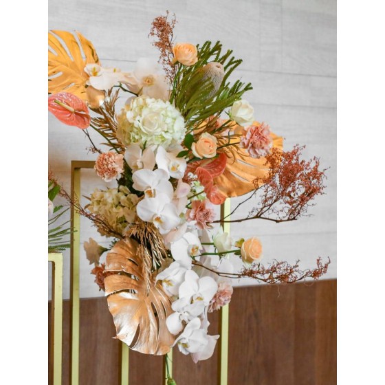 花 材:蝴蝶蘭、玫瑰、繡球、佛塔(季節限定)、虎杖(季節限定)、康乃馨、桔梗、當季葉材及配花