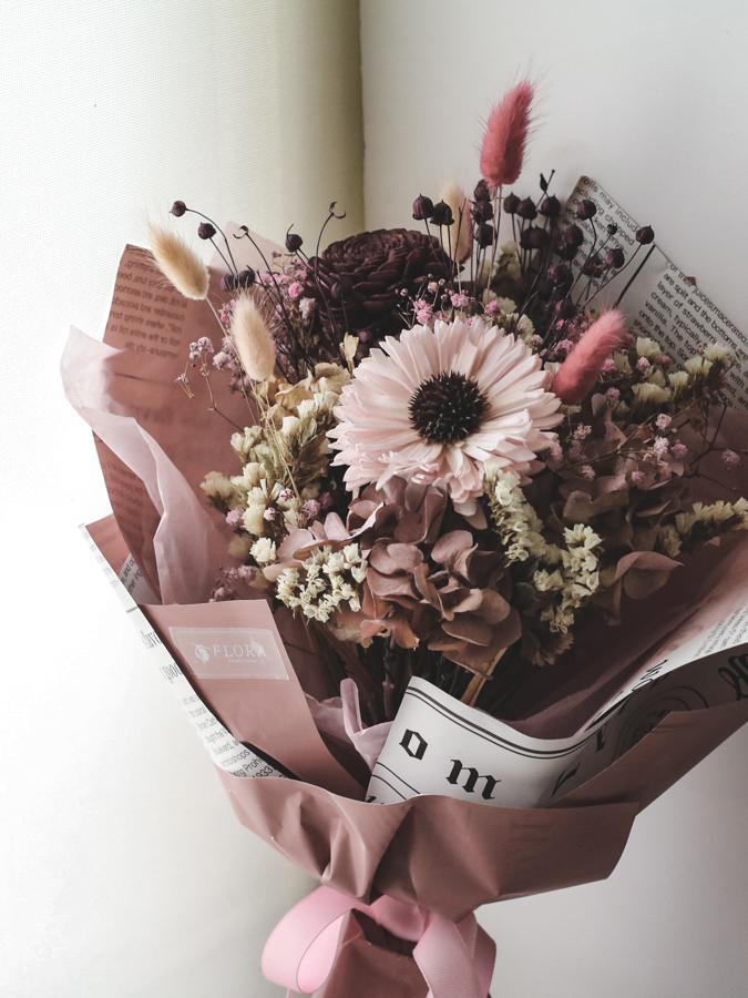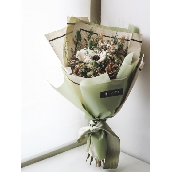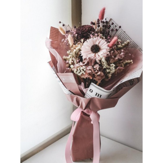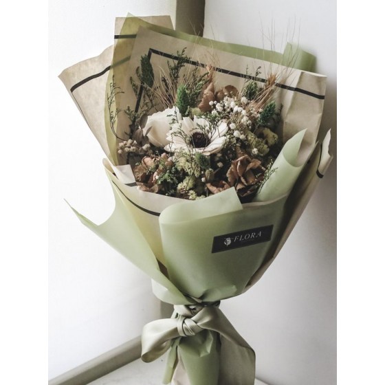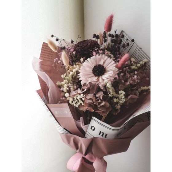 商品須知: 尺 寸:高約35x寬約25公分 (手作商品,可能會有約正負3公分的誤差) 花 材:蓪草花、乾燥花材及葉材 注意事項: 共有三色可選擇,色系請於訂購時一併備註。 永生花及乾燥花若保存得當可擺放約2-3年,但仍會因擺放位置溫度、濕度等各類因素影響擺放年限。建議放置於陰涼乾燥處,請勿直射陽光以免花材褪色。 永生花及乾燥花會因製作批次的不同而產生不同的色差,大小也會有些許差異性,如遇花材及資材缺貨,請同意花藝設計師更換類似花材及資材。 附加服務:商品皆可提供花卡。
