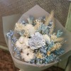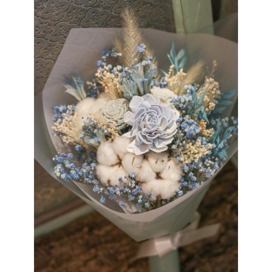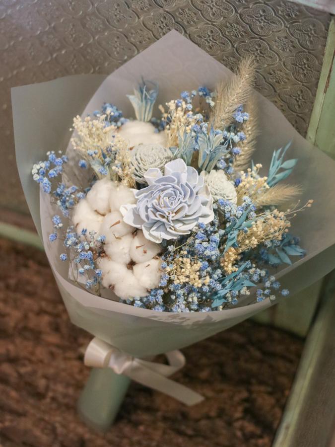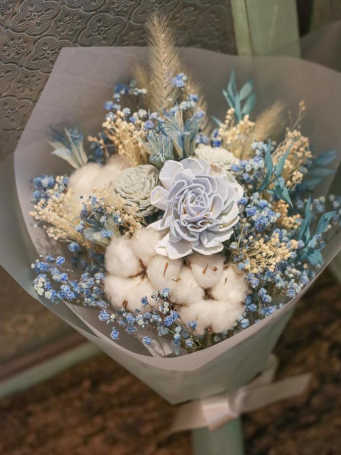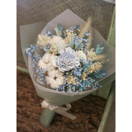 商品須知: 尺 寸:高約35x寬約25公分 (手作商品,可能會有約正負3公分的誤差) 花 材:蓪草花、乾燥花材及葉材 注意事項: 永生花及乾燥花若保存得當可擺放約2-3年,但仍會因擺放位置溫度、濕度等各類因素影響擺放年限。建議放置於陰涼乾燥處,請勿直射陽光以免花材褪色。 永生花及乾燥花會因製作批次的不同而產生不同的色差,大小也會有些許差異性,如遇花材及資材缺貨,請同意花藝設計師更換類似花材及資材。 附加服務:商品皆可提供花卡。