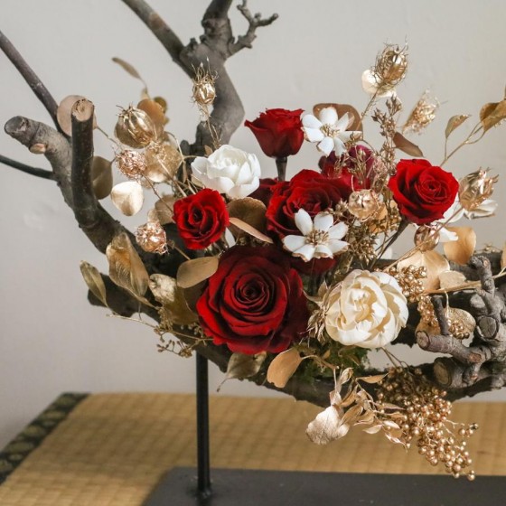 商品須知: 尺 寸:高約30x寬約40公分(手作商品,可能會有約正負3公分的誤差) 花 材:永生花、蓪草花、乾燥花材及葉材 注意事項: 永生花及乾燥花若保存得當可擺放約2-3年,但仍會因擺放位置溫度、濕度等各類因素影響擺放年限。建議放置於陰涼乾燥處,請勿直射陽光以免花材褪色。 永生花及乾燥花會因製作批次的不同而產生不同的色差,大小也會有些許差異性,如遇花材及資材缺貨,請同意花藝設計師更換類似花材及資材。 附加服務:商品皆可提供花卡。
