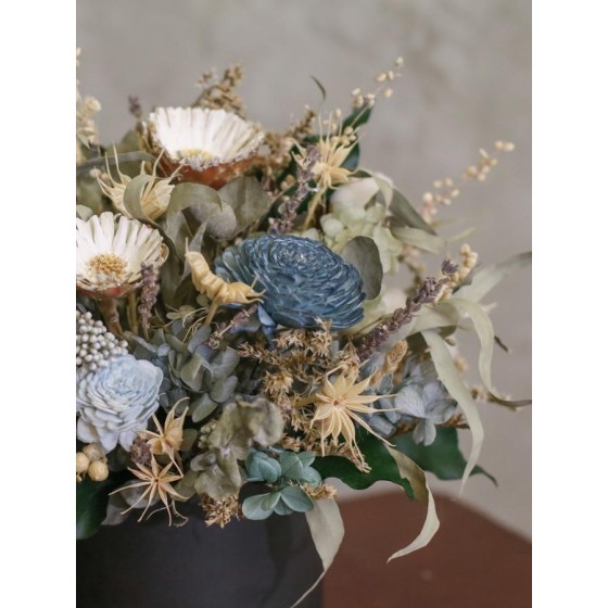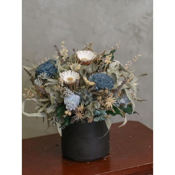商品須知: 尺 寸:高約30x寬約25公分(手作商品,可能會有約正負3公分的誤差) 花 材:永生花材、蓪草花、乾燥花材及葉材 注意事項: 永生花及乾燥花若保存得當可擺放約2-3年,但仍會因擺放位置溫度、濕度等各類因素影響擺放年限。建議放置於陰涼乾燥處,請勿直射陽光以免花材褪色。 永生花及乾燥花會因製作批次的不同而產生不同的色差,大小也會有些許差異性,如遇花材及資材缺貨,請同意花藝設計師更換類似花材及資材。 附加服務:商品皆可提供花卡。