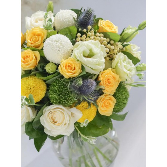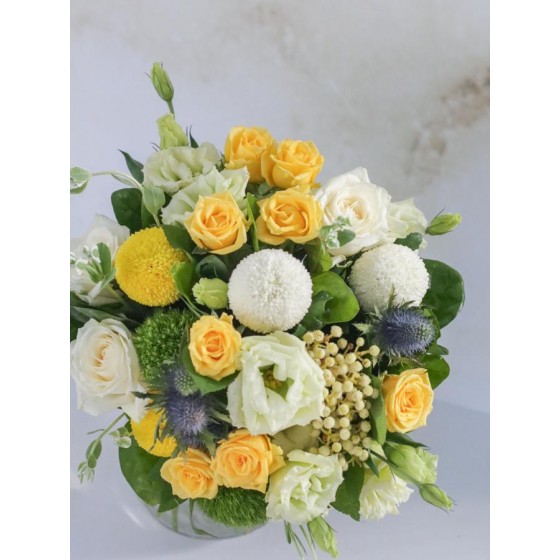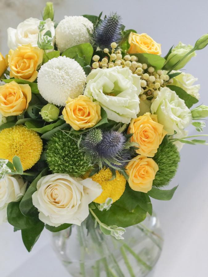 花 材:玫瑰、石竹、乒乓菊、當季葉材及配花