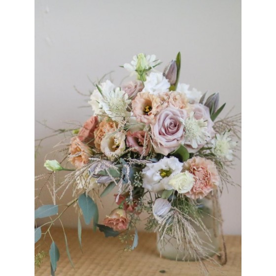 花材為天然植物,會因氣候的變化而產生不同的色澤,顏色也會有些許差異性,如遇花材缺貨,請同意花藝設計師更換類似花材。