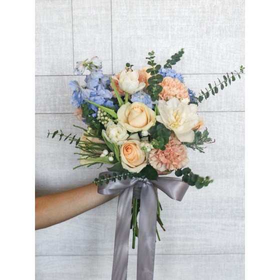 花材為天然植物,會因氣候的變化而產生不同的色澤,顏色也會有些許差異性,如遇花材缺貨,請同意花藝設計師更換類似花材。